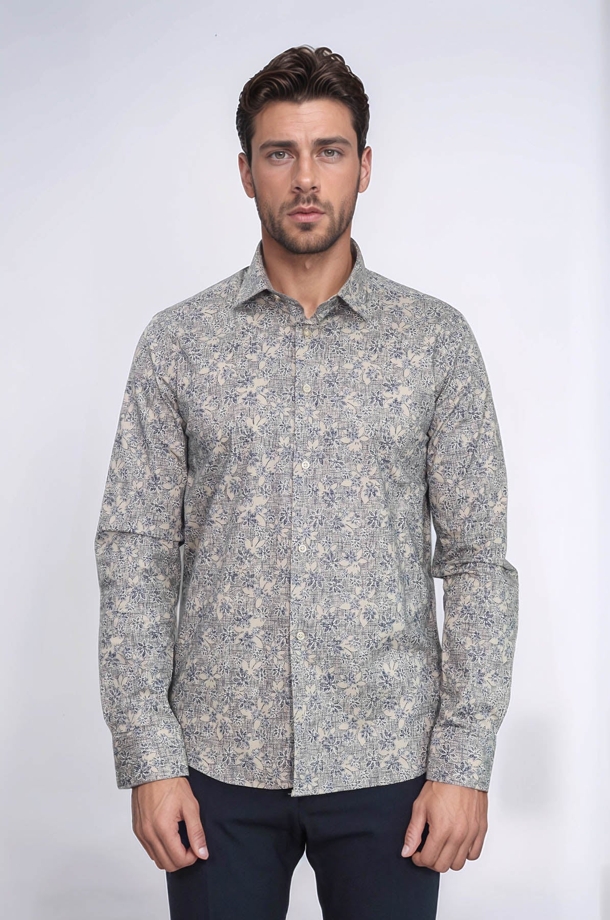 Bloom Patterned Beige Slim Fit Shirt - Wessi