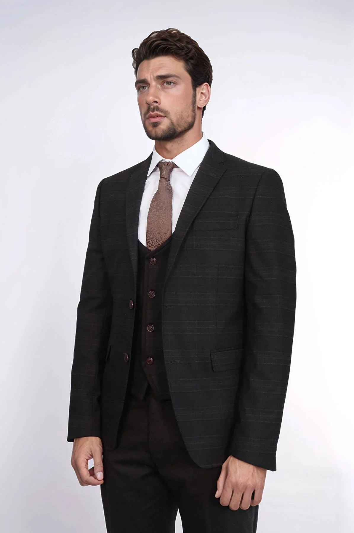 Specially offered for the winter season, this is one of the most stylish and flashy models among plaid suit products. Perfect for those who prefer cachet winter suit products in men's fashion. You can combine vest, pants and jacket combinations with your neckties, handkerchiefs and shirts. This model will best reflect the harmony of black and coffee tones and will be your savior in every environment.