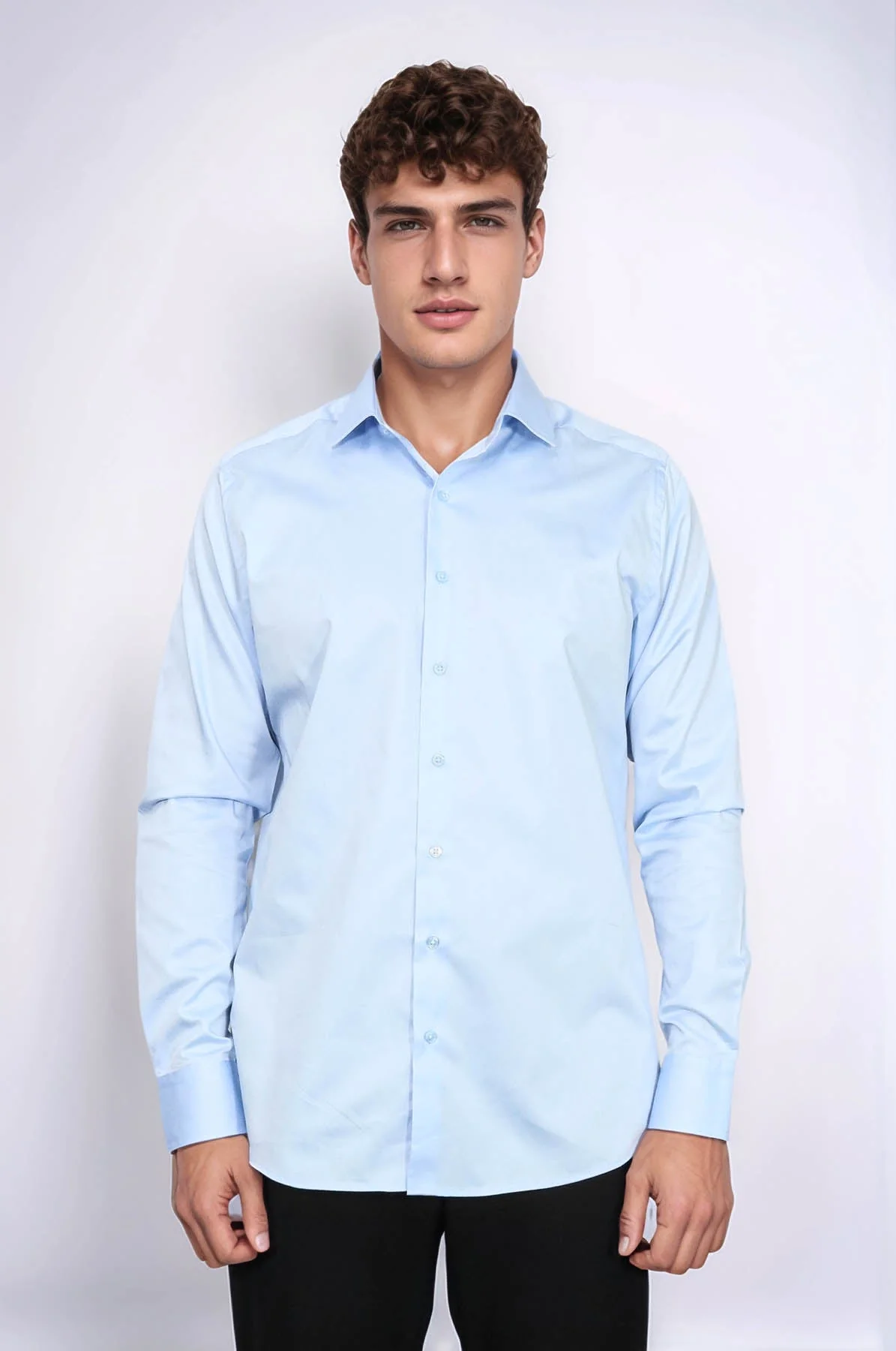Satin shirt is quite popular with its ice blue color. The fabric of the product is satin and cotton. It is very comfortable to use thanks to its cotton fabric. You can easily use it both in daily life and on your special days. It is also very interesting thanks to its satin structure. The model of the product is slimfit. It shows your physique much better with slim fit model. One of the most preferred models of the recent times, the shirt can be said to keep its place in the coming seasons.