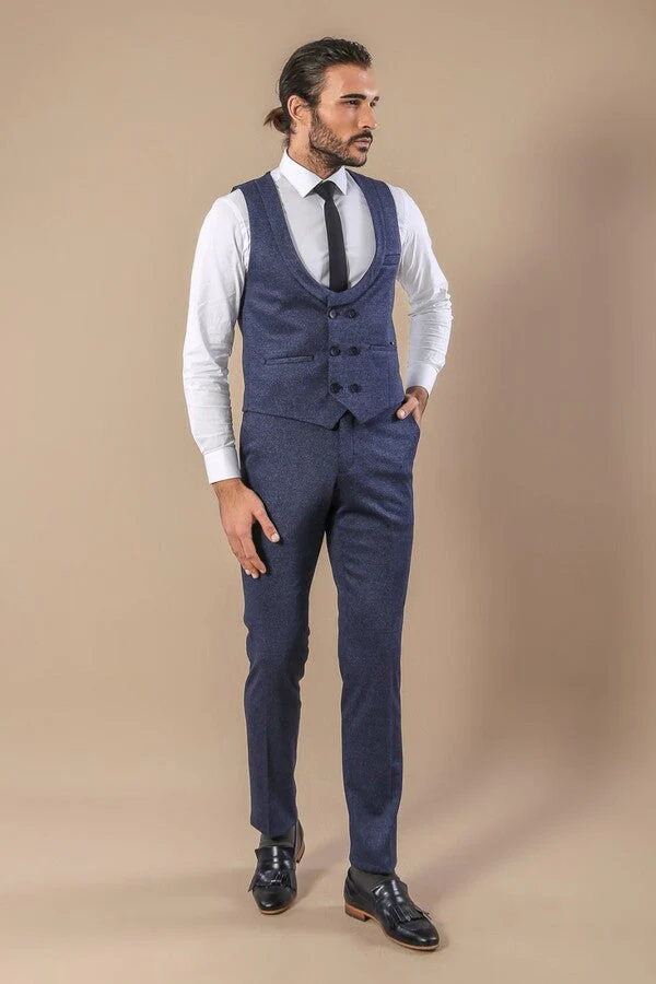 Patterned Double Breasted Blue Vest Trousers Set - Wessi