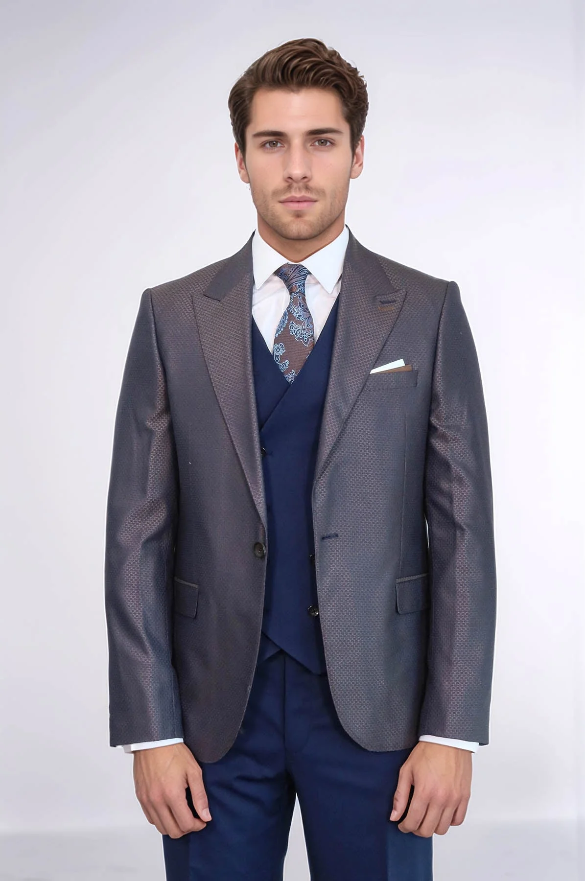Why Choose Wessi Navy Blue & Brown Patterned Suit?
