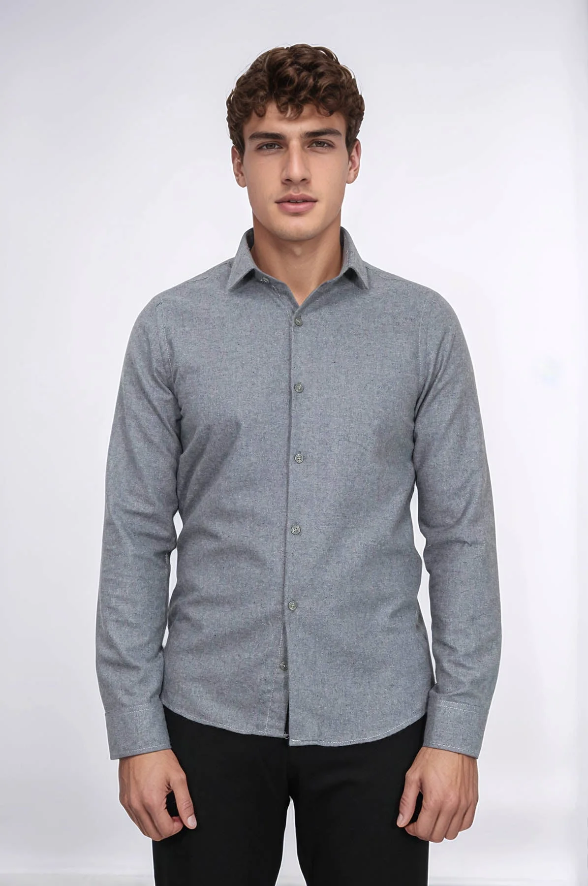 Plain Slim Fit Grey Men Lumberjack Men Shirt - Wessi