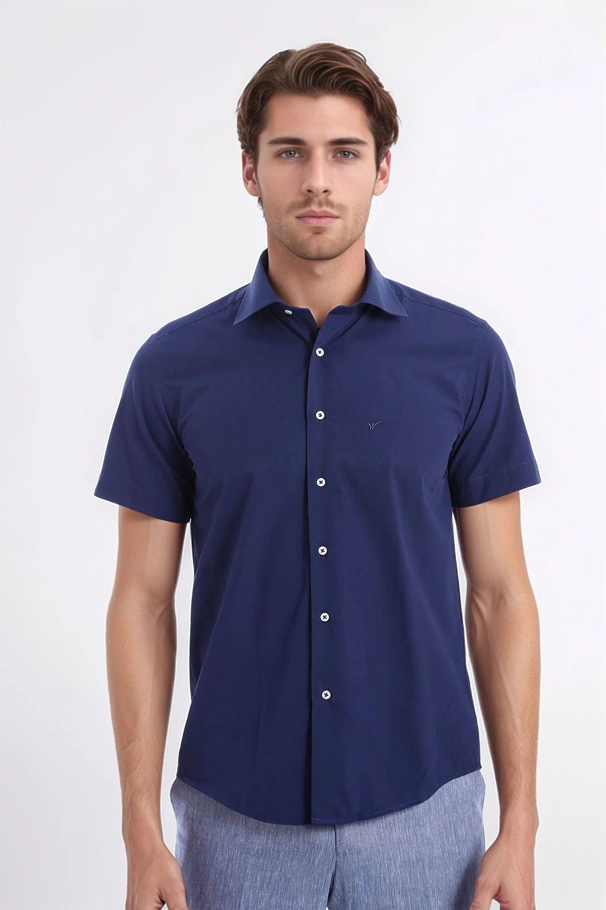 The short-sleeved navy blue colored shirt model, which is among the standard fit models for classic styles, is among the most comfortable models of spring summer concepts. Navy blue can also be used in casual styles and can create harmonious styles in business concepts. It can be combined with pants in gray or cream tones for harmonious concepts. The model with a slilm fit can be completed with a black belt. In this way, black shoes will be the ideal shoes for your concept choices. You can find all the menswear products you are looking for on our site. You can easily access the most trendy products of each season and choose Wessi quality in your style with cheap price advantages. For your spring and summer concepts, you can buy products at discounted price ranges for every use.