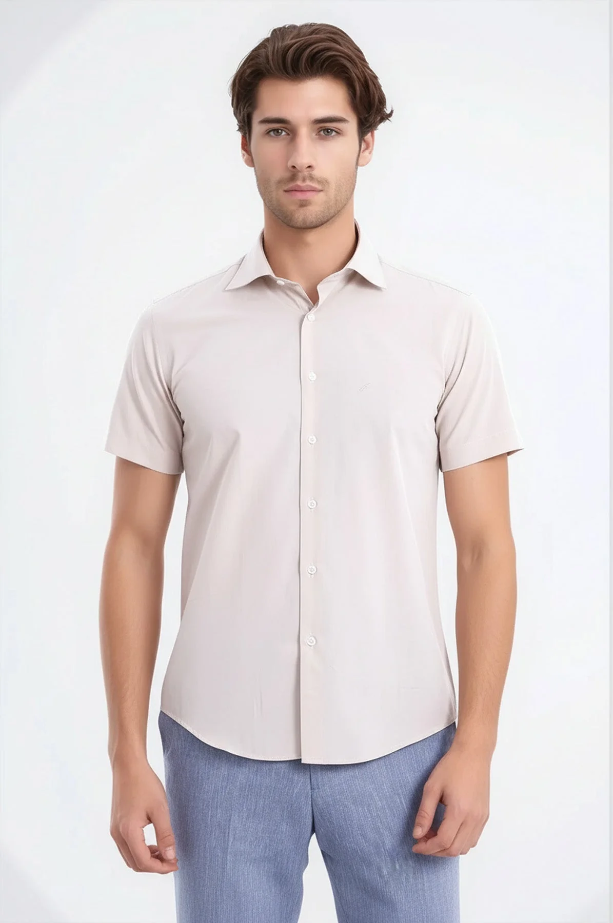 Short Sleeves Poly Cotton Slim Fit Cream Men Shirt - Wessi