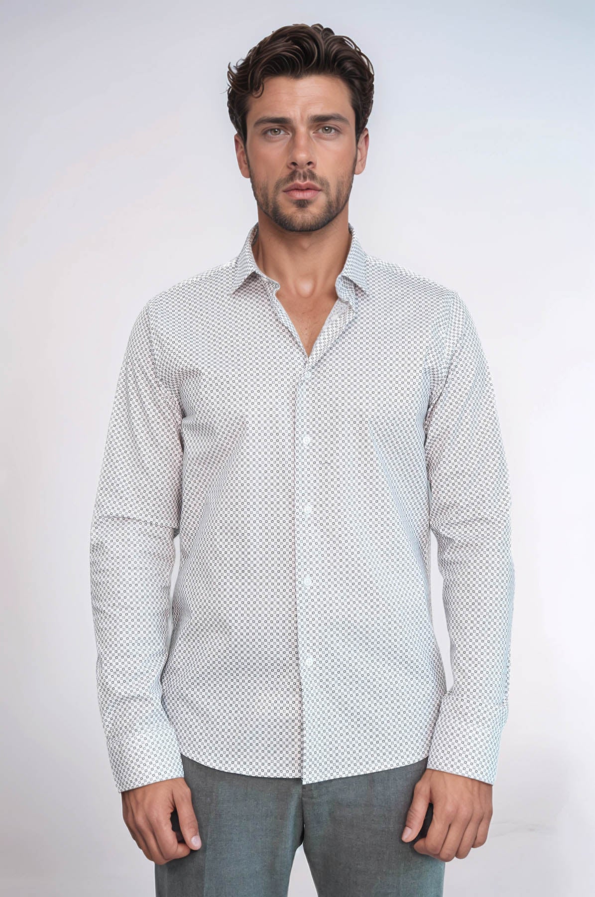 White Tiny Check Patterned Slim Fit Shirt - Wessi