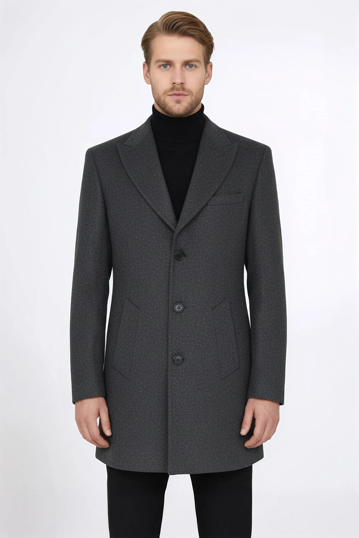 Wide Lapel Wool Anthracite Men Coat - Wessi